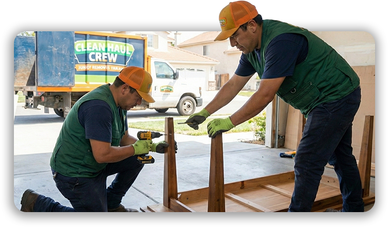Whether you’re clearing out the garage in Chula Vista or need a hand assembling furniture in North County, the Clean Haul Crew is ready to do the heavy lifting for you. We’re local, we’re friendly, and we’re here to make your space shine.